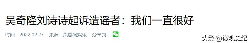 3. 《吴奇隆刘诗诗起诉造谣者:我们一直很好》凤凰网娱乐,2022年2月27日发布;