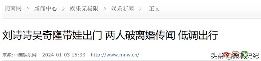 2. 《刘诗诗吴奇隆带娃出门 两人破离婚传闻 低调出行》闽南网,2024年1月3日发布;