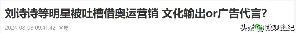 4. 《刘诗诗等明星被吐槽借奥运营销 文化输出or广告代言》网易,2024年8月日发布;