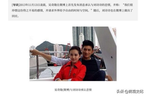 2013年,吴奇隆发布动态,承认了他与刘诗诗的恋情。