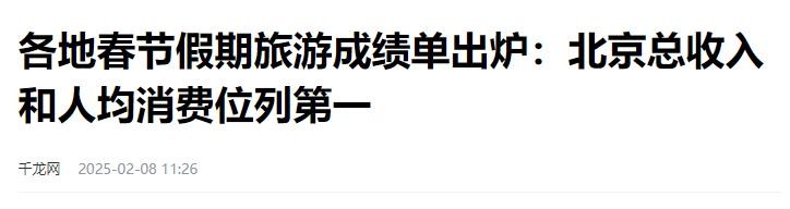 更别说春节期间北方寒冷的气候,也让不少游客更倾向于选择温暖的南方,不过北京此次春节旅游季当中,人均消费位列第一。