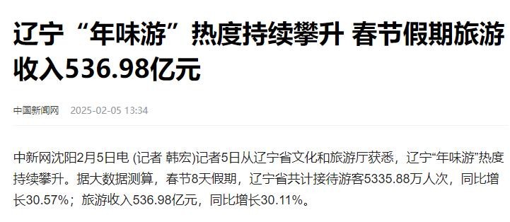 这两年,东北旅游算是彻底火出圈了,在2025年的春节旅游市场中,北方省份的表现也相当亮眼,其中最引人注目的当属辽宁。