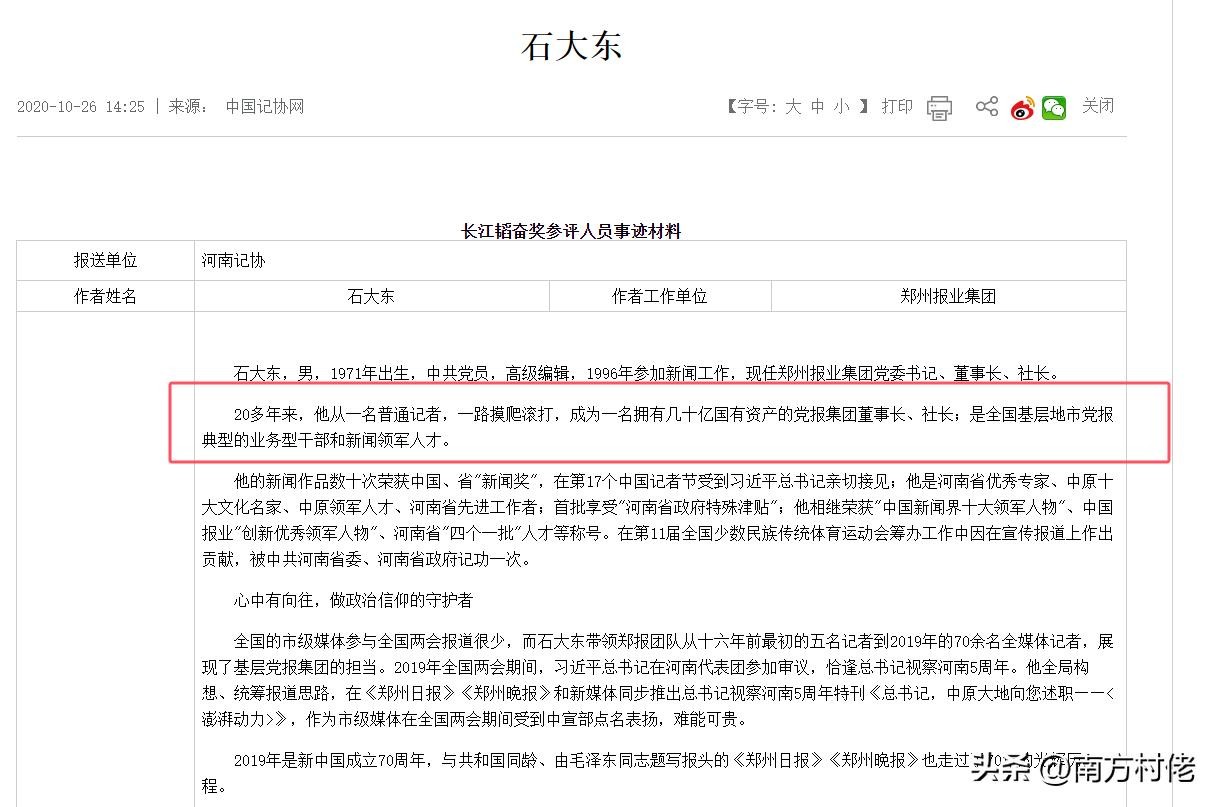笔者也是详细看完了石大东的长江韬奋奖参评人员事迹材料,里面提到:20多年来,他(石大东)从一名普通记者,一路摸爬滚打,成为一名拥有几十亿国有资产的党报集团董事长、社长;是全国基层地市党报典型的业务型干部和新闻领军人才。
