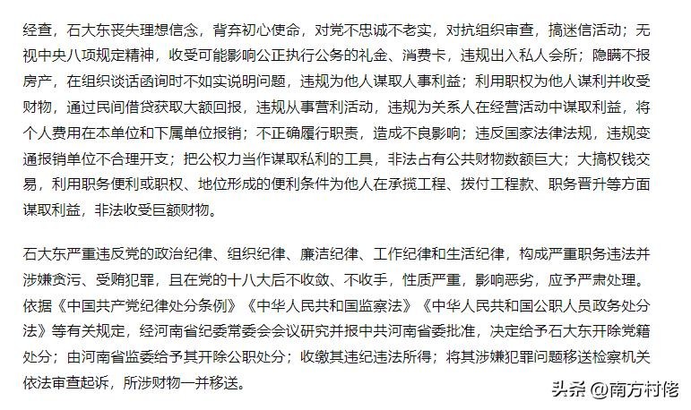 想要了解更多信息可以关注相关的网站,关于河南省郑州市政协原副主席石大东被“双开”,对此您怎么看呢,欢迎在评论区进行讨论。