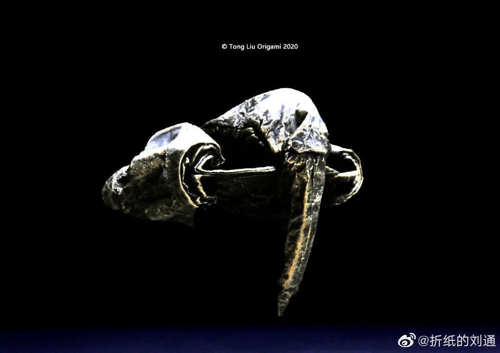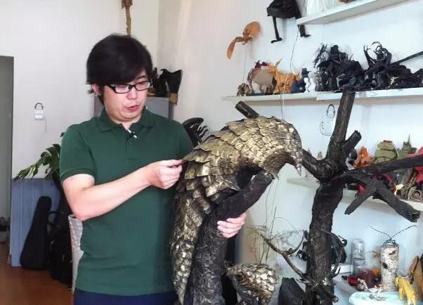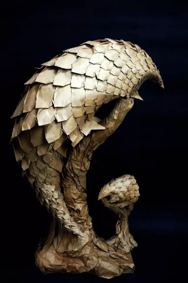 这是以一只被杀的母穿山甲肚子还怀着小穿山甲为原型创作的作品《母爱》,已被西班牙Zaragoza Museum of Origami博物馆收藏