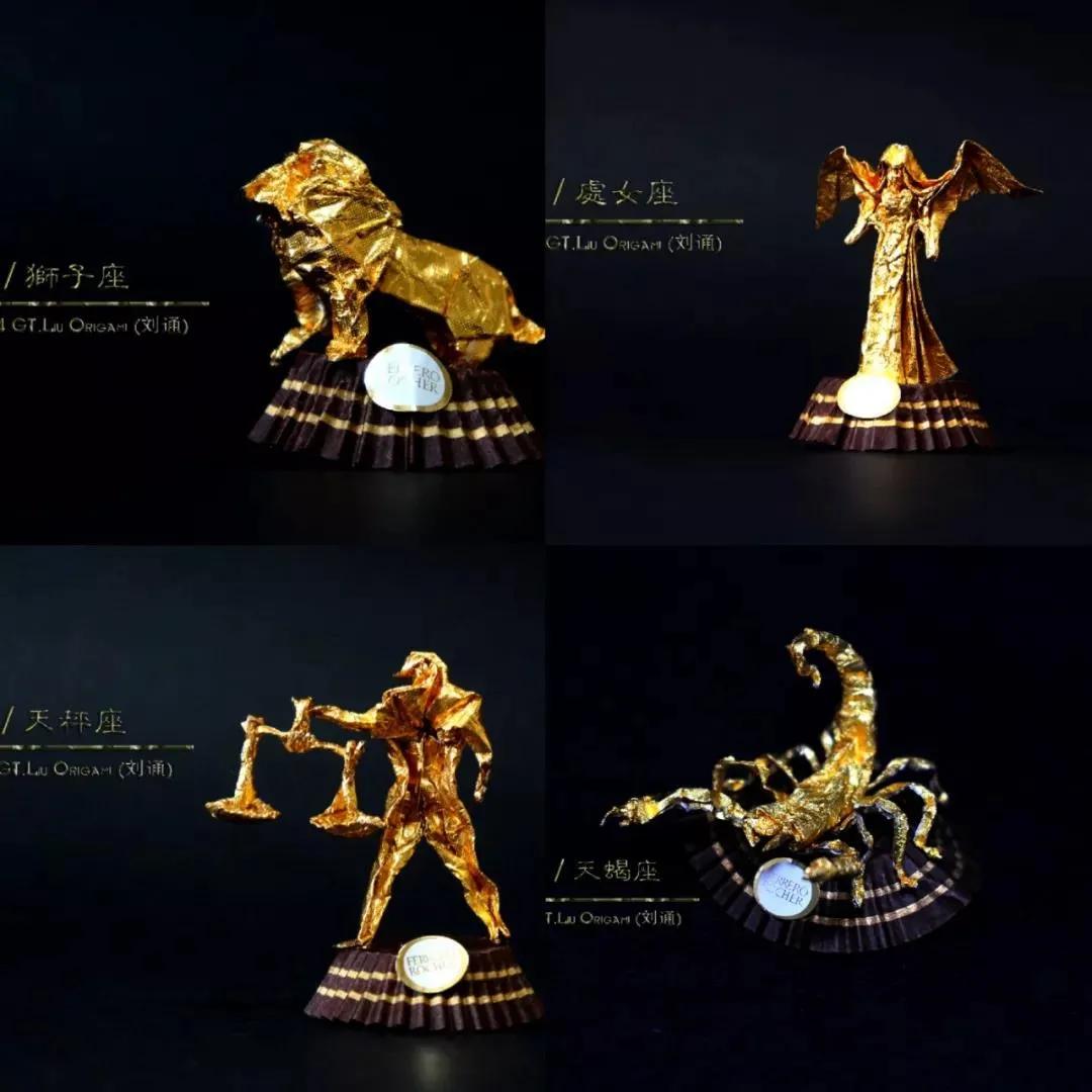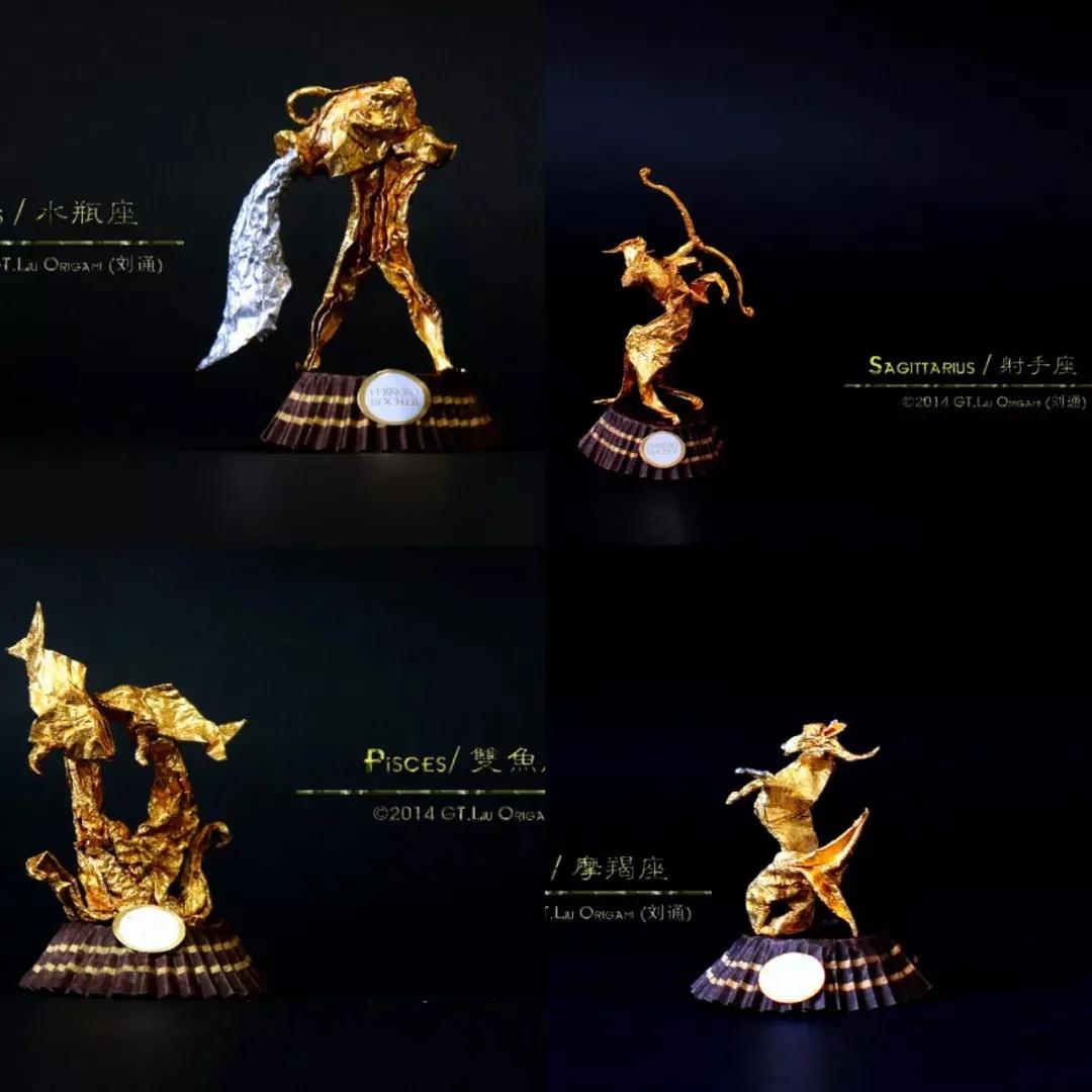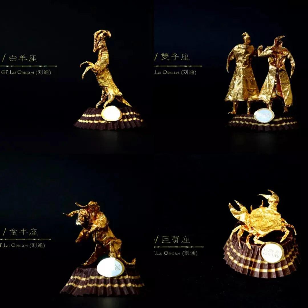 用金色包装纸折制了十二星座的形象