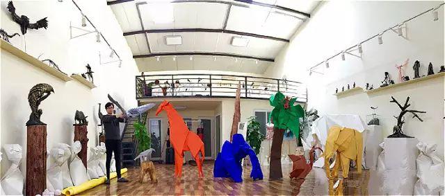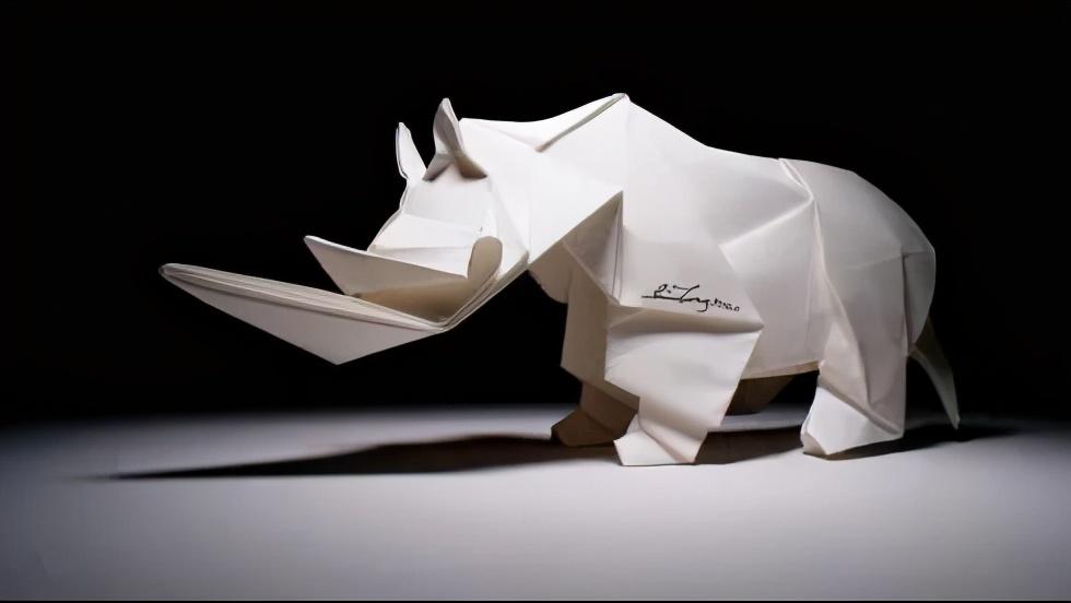 完成了世界上最大的折纸白犀牛