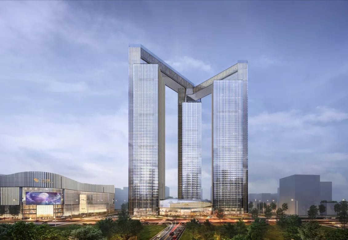 与南京金鹰世界一样,这个综合体也是由三座塔楼(高度分别为255米、255米、250米)通过空中廊桥连接成一个整体。