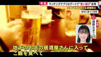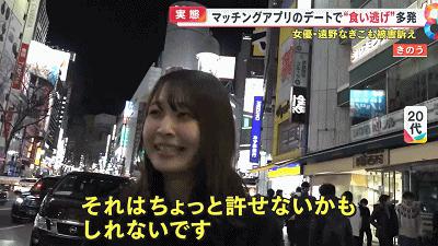 令远野凪子和日本年轻女性气愤不已的事情是最近在日本频繁发生的 " 交友 APP 逃单事件 "。简单来说,就是通过交友 APP 相识的两个人,在约饭途中有一方故意不买单,溜之大吉的行为。