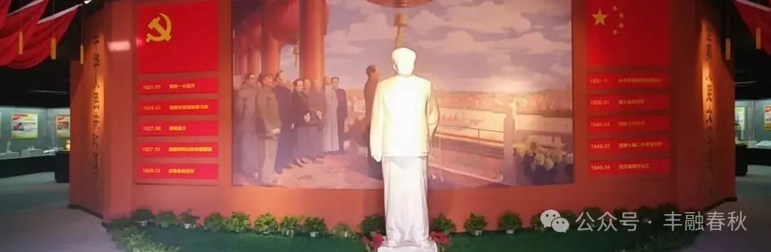 此章为“向心力”构图,五大圣地在光芒万丈的毛泽东头像之下,构成一幅山河壮丽、江山多娇的时代画卷。