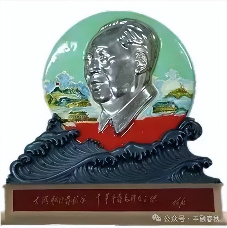 毛泽东头像的雕塑采用中国传统的圆雕手法,佛慈亲切,乐观自信,形成了“红光亮”的时代特色,很有艺术感染力,也极具喜感。