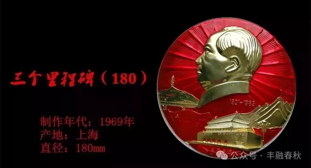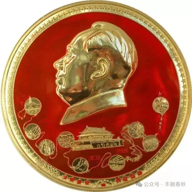该章是单位面积浮雕最高者,主席头像突出,生动逼真,意境非凡,有沧桑厚重感。这枚像章反映毛泽东的革命历程。