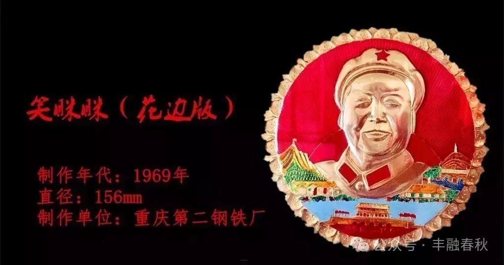 “笑眯眯”像章是重庆第二钢铁厂设计、制作的,该厂是国家保密军工企业,全国重点特殊钢厂之一,为中国第一颗卫星、运载火箭、军舰、战斗机、核聚变等生产优质钢材。