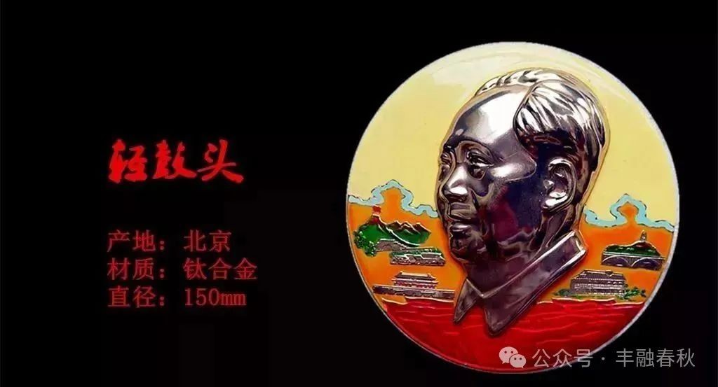 轻鼓头像章是七机部下设某军工单位制作的,直径很大,但很轻很薄,头像鼓出,所以俗称轻鼓头。