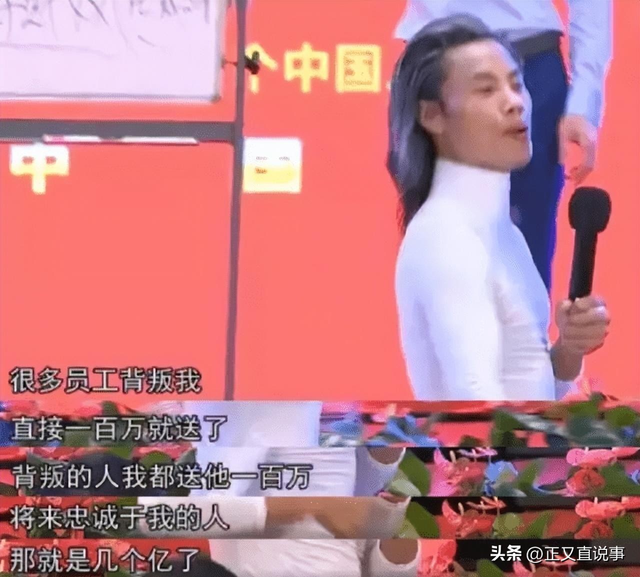 他的经典名言之一是“背叛我的人给他100万,跟着我的人将来就是一个亿……听懂掌声。”