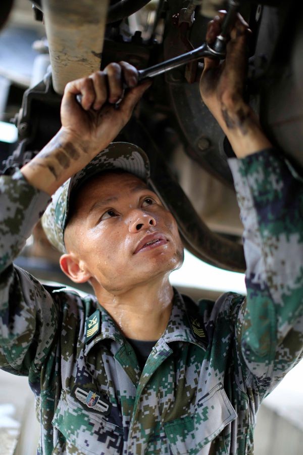 高玉华:只要接到维修电话,我马上就会提着工具箱赶到现场。一见面,就说“高医生来了”。之所以这样称呼我,就是因为我们单位所有的机械车辆,我都能操作驾驶、独立维修,就像是“机械医生”一样。现在不管到哪个连队,只要电气设备出现了问题,我都能动手修理。