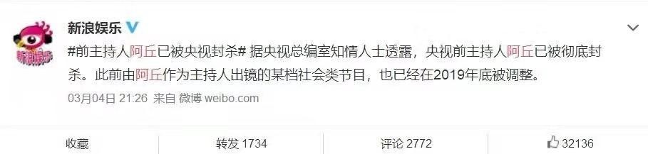 第一位阿丘,阿丘曾是一位知名的央视名嘴,从2003年进入央视以来,主持过很多知名的节目,原本在央视会有很好的前途,然而他却因为一条微博自断前程。
