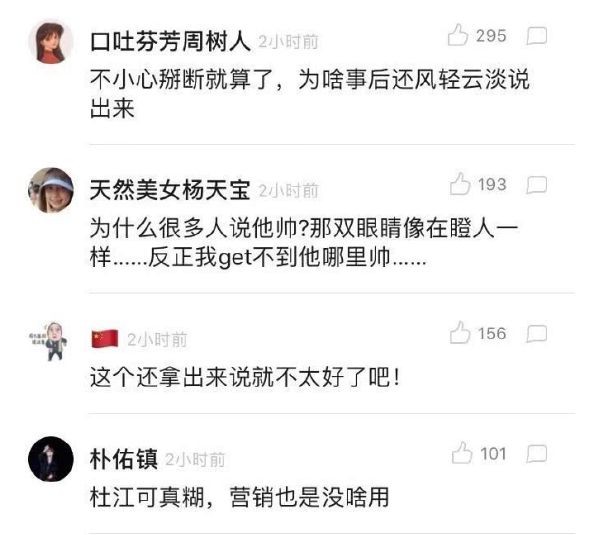 于是这期节目播出之后,杜江也因此饱受质疑,粉丝纷纷为张真源打抱不平,甚至还跑到杜江的微博中质问。