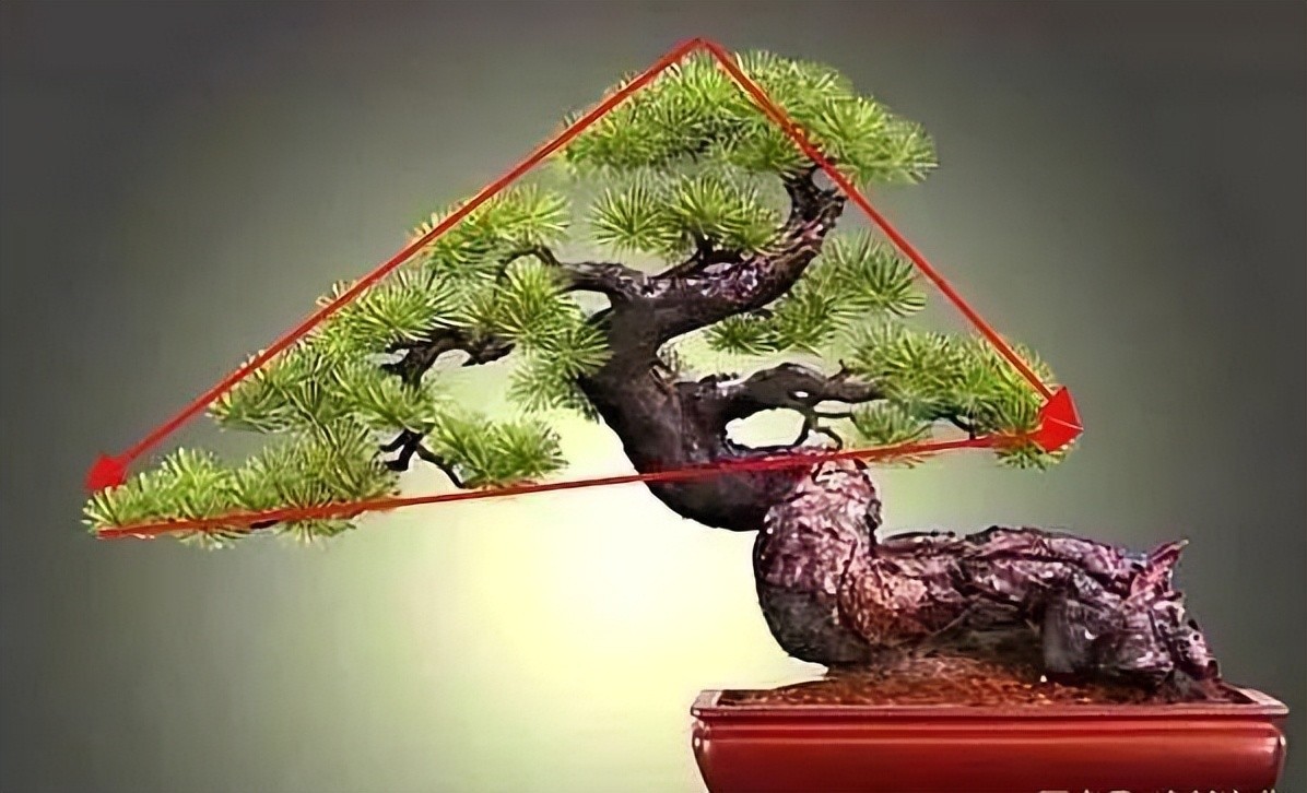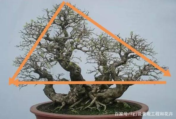 打造卧干式盆景,最难的一点,就是要寻找植株的一个黄金分割点,只有找对了,才能够不断的掌握、调整好盆景的重心,让它美得有价值、又高调!大家可以参照下图的比例来做自己的盆景。
