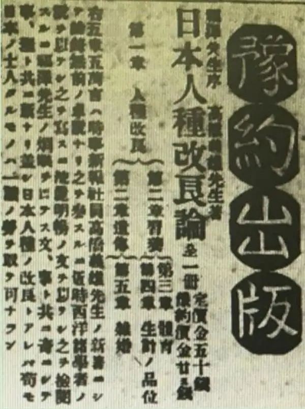 1884年日本学界一本著名的《日本人种改良论》出版,作者是高桥义雄
