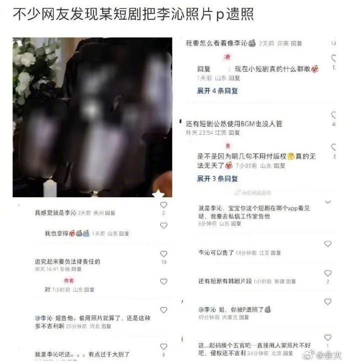 近日,有网友发现,某短剧把知名女演员李沁的证件照 P 成黑白,在剧情中充当遗照。此事引发热议。