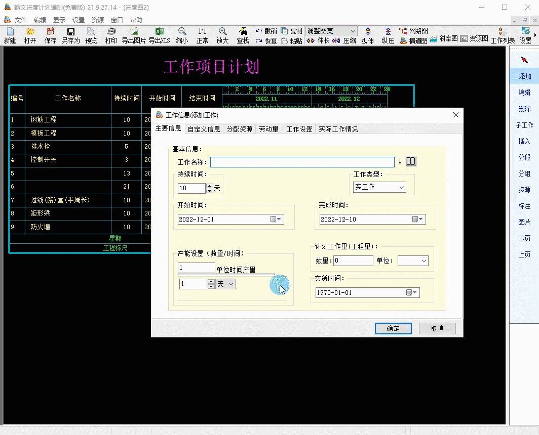 横道图自动生成软件:只需新建工程项目,输入开工和竣工时间,就可一键自动生成横道图,施工进度一目了然!