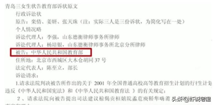 认为这是教育的不公平,所以三名同学联名状告了教育部,把教育部告上了法庭,理由是教育部的这种做法,对全国的考生造成的很大的不公平,起诉教育部侵犯了广大考生的平等受教育权。