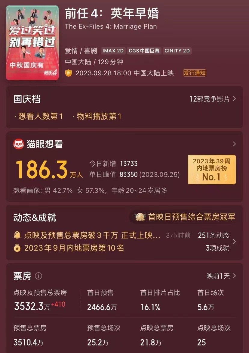 2023国庆档电影预售票房排名,几家欢喜几家愁