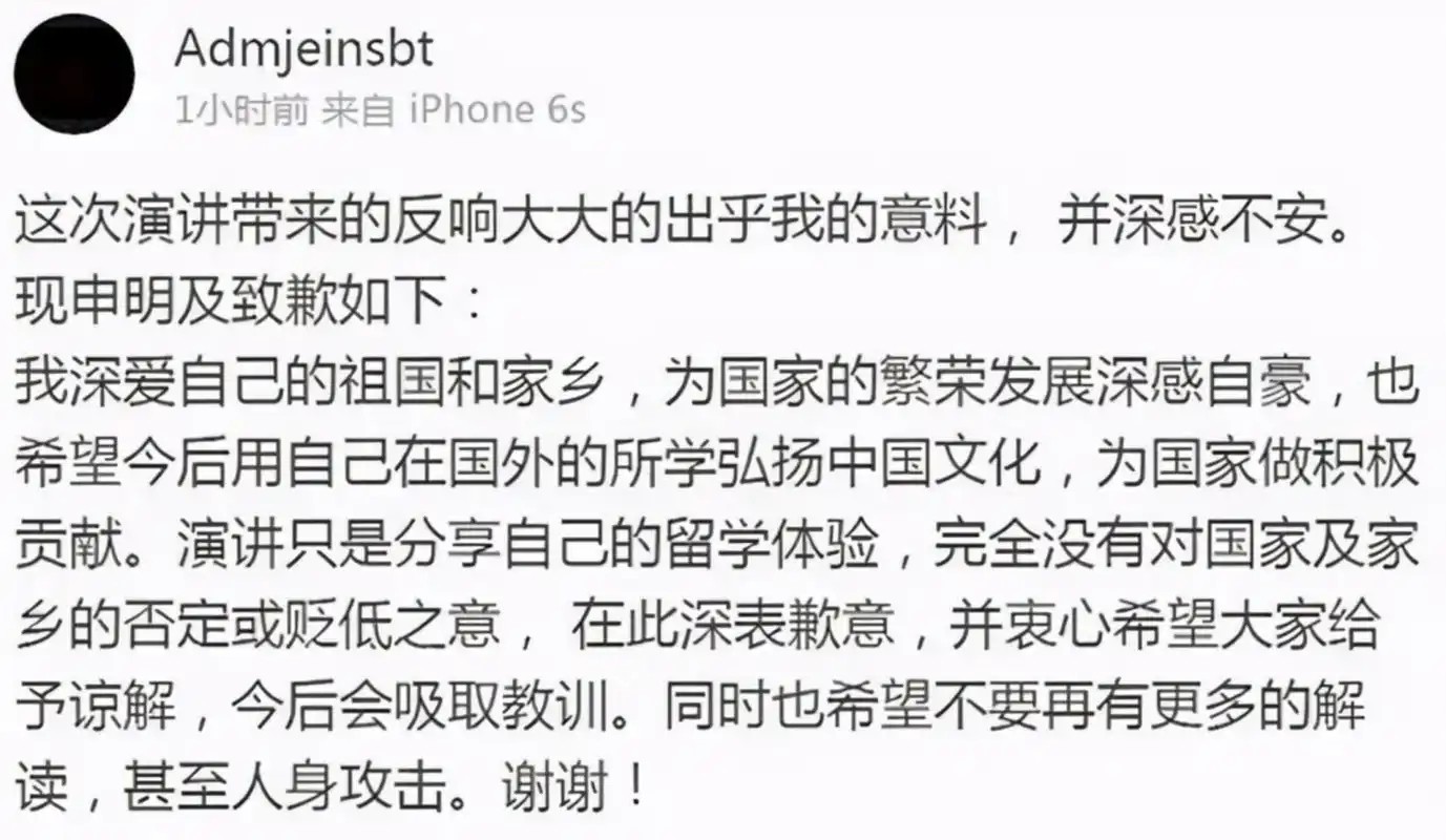 由于事情闹得太大,杨舒平也不得不在网上发了一篇所谓的道歉声明。