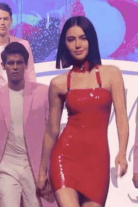 去年上海维密秀她也来过,为什么我没有注意到呢?穿着一身乳胶裙子还以为是来和在场的维密打擂台的。