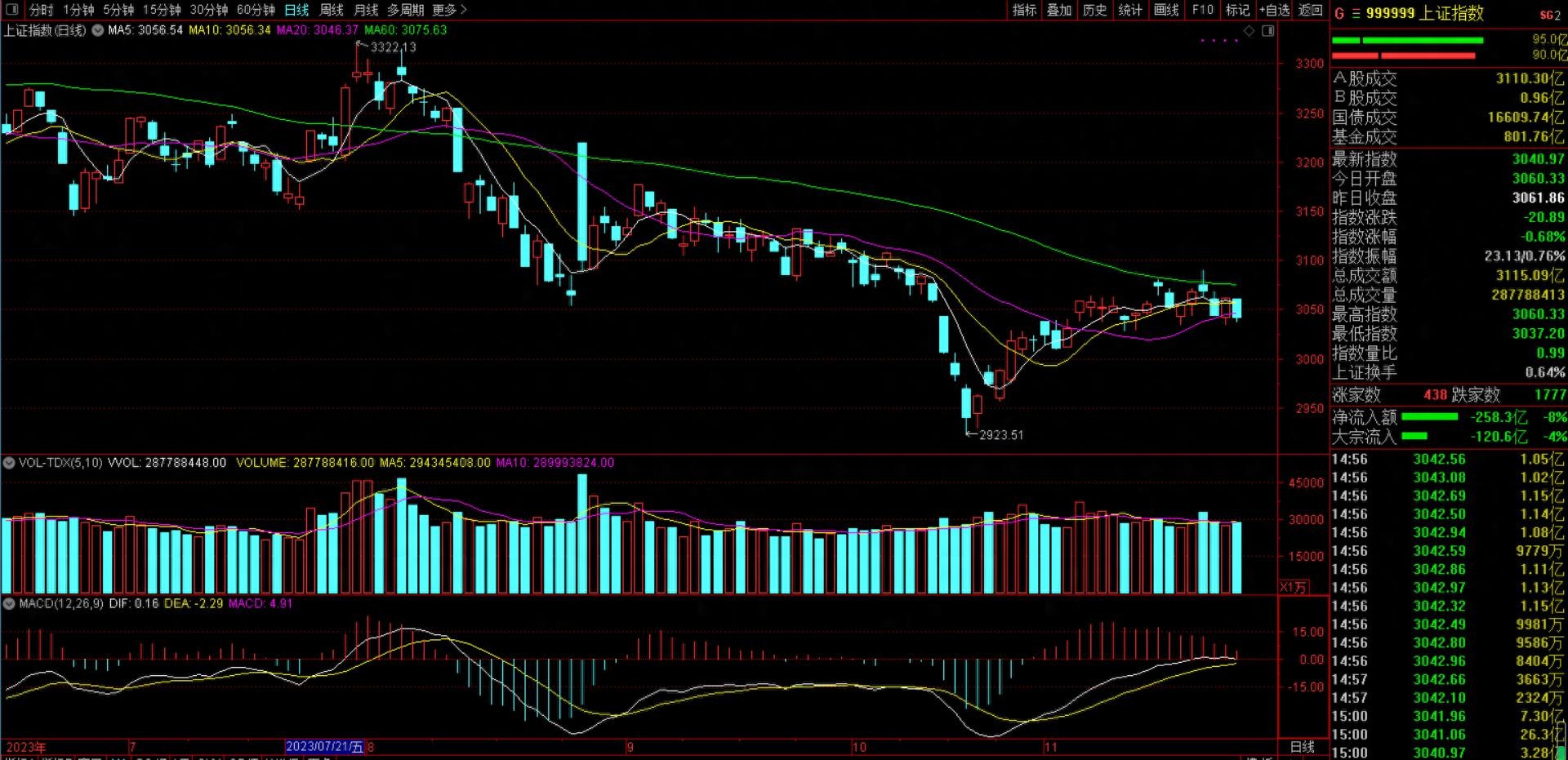 然而在我看来影响最大的还是外盘的情况,首先是今天A50指数下跌幅度超过了1%,并且看这架势短期内好像要打破好不容易形成的支撑,这对A股的走势自然会形成带动效应:另外不得不说的就是北向资金了,今天盘中流出额度最大时达到了83亿元,下午15点收盘时净流出接近62亿元,昨天才流进了50亿元,今天就全卖了,我仔细看了下最近一段时间的北向资金整体情况,感觉卖出的时候比买入的要多,这多少说明了资金流出的一种坚决性,从这点可以得出的基本结论是,啥时候北向资金不卖出了,或者持续一段时间的资金改为净流入的时候多,那时候A股的向上底气就比较足了。