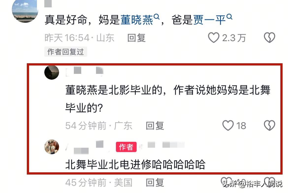 翻看留言处不难发现,原来此人并不是素人,而是贾一平的妻子董晓燕。