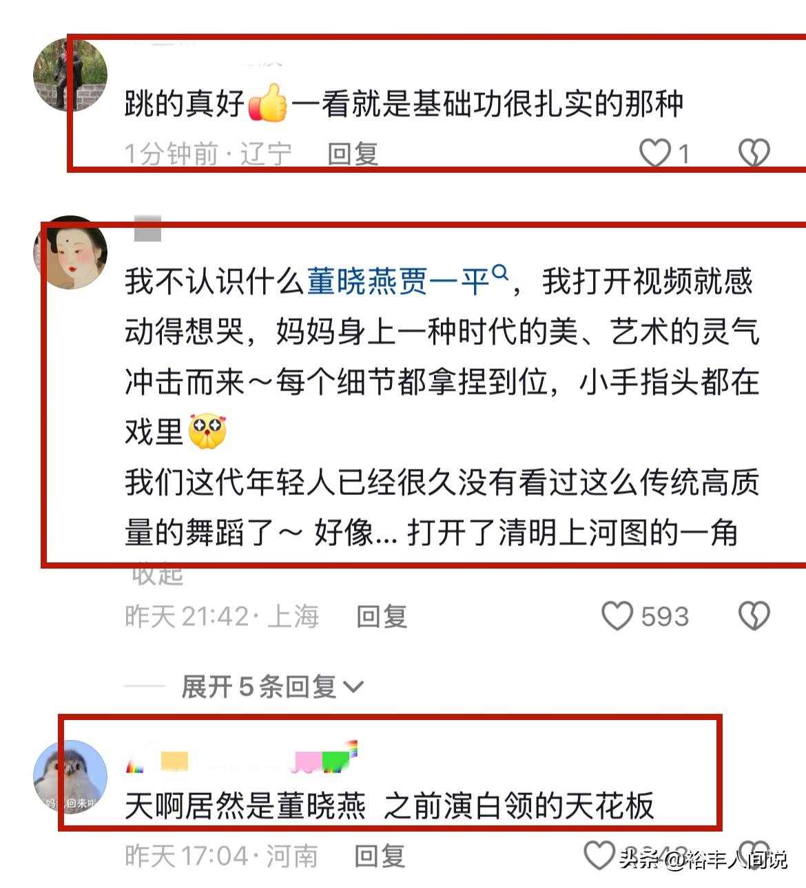 抛开演员以及贾一平妻子这两重身份不说,董晓燕带来的震撼真的很大:身上有一种时代的美,艺术的灵气冲击,每个细节都拿捏得十分到位,身姿更是堪称完美,小手指的动作更是在戏里,好似打开了清明上河图的一角。