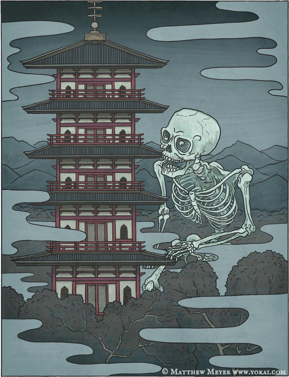 荒骷髅也叫做饿者骷髅,是一个体型巨大的骇骨妖怪。传说它是战死者或路边的死者等未被埋葬的死者们的骇骨和怨念所集结成的巨大骇骨。