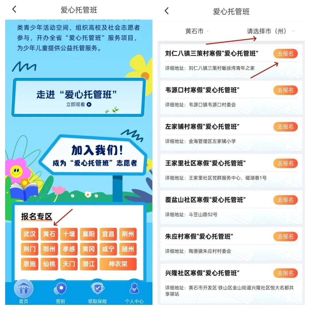 步骤一:进入志愿汇APP选择湖北省内定位,进入湖北省“爱心托管班”志愿者招募管理平台。