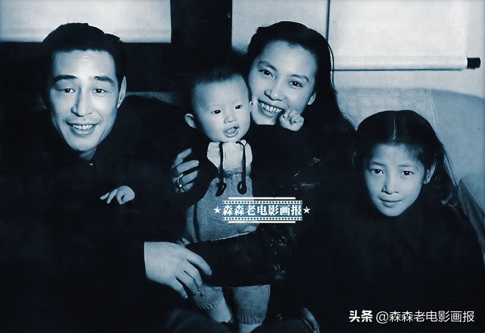 一家四口。右一为秦怡与陈天国生的女儿斐斐。