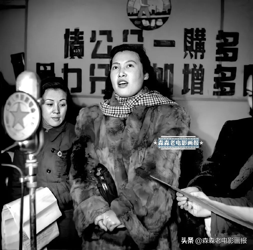 秦怡与上官云珠等在电台宣传购买国债
