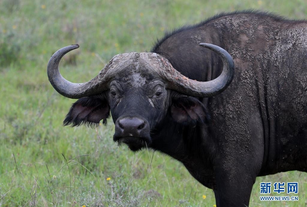 这是5月19日在肯尼亚内罗毕国家公园内拍摄的野牛。