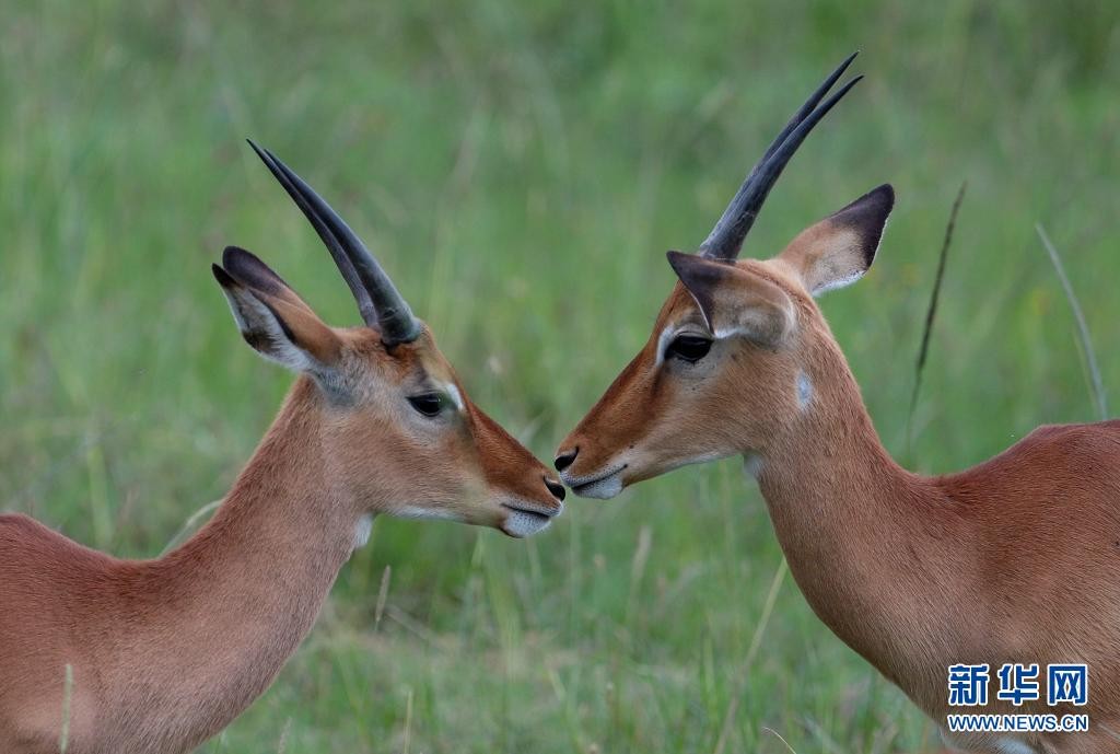 这是5月19日在肯尼亚内罗毕国家公园内拍摄的两只瞪羚。