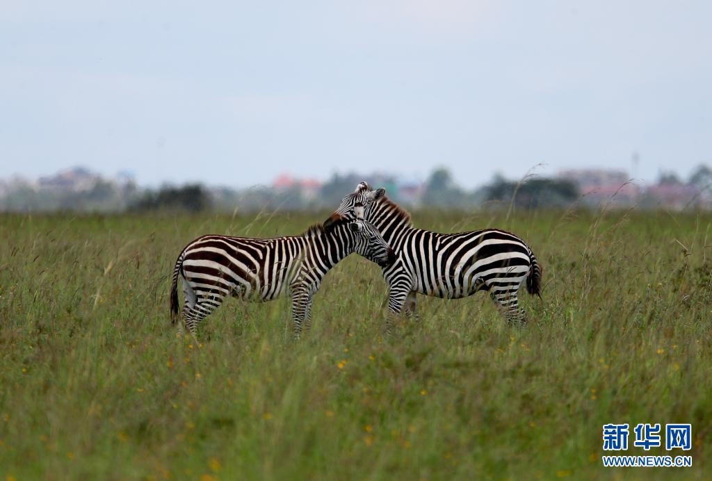 这是5月19日在肯尼亚内罗毕国家公园内拍摄的斑马。