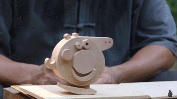 除此之外,就连小孙子的玩具也都是爷爷亲手用木头制作的,泡泡机、小猪佩奇等木质玩具惟妙惟肖。