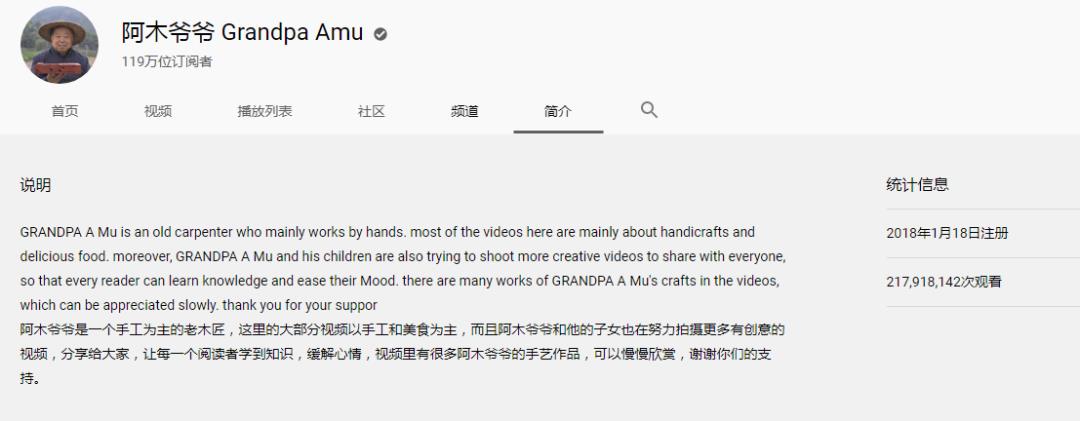 Her traditional food preparation craft and Chinese rural lifestyle have attracted 11.1 million subscribers on YouTube. Just like Li Ziqi, Grandpa Amu is also trying to spread unique Chinese techniques to the world.
