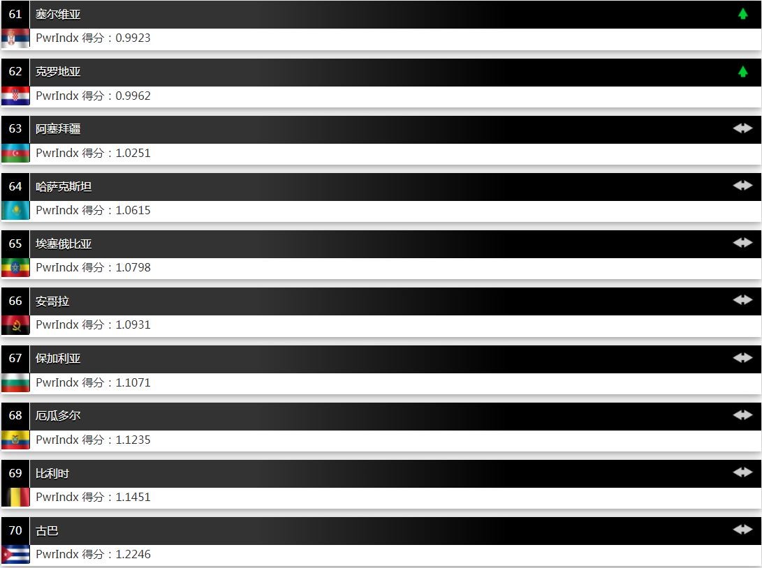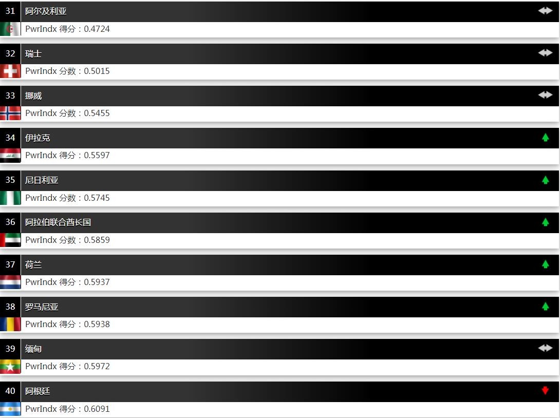 下面我们再看看其他国家的排名。