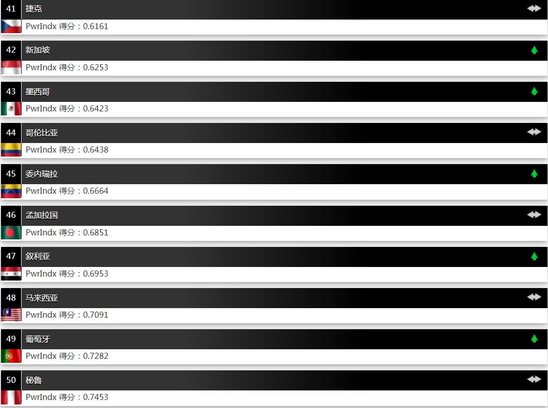 全球军力排名第41-50的国家和地区