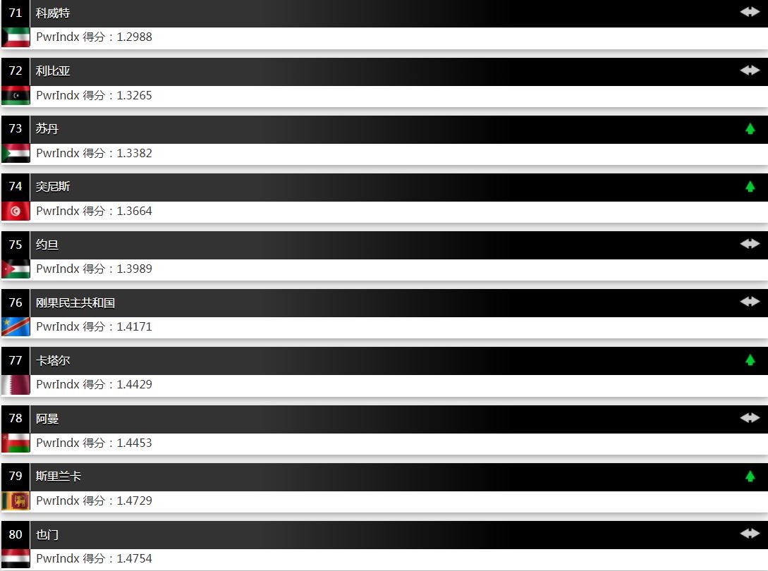 全球军力排名第71-80的国家和地区