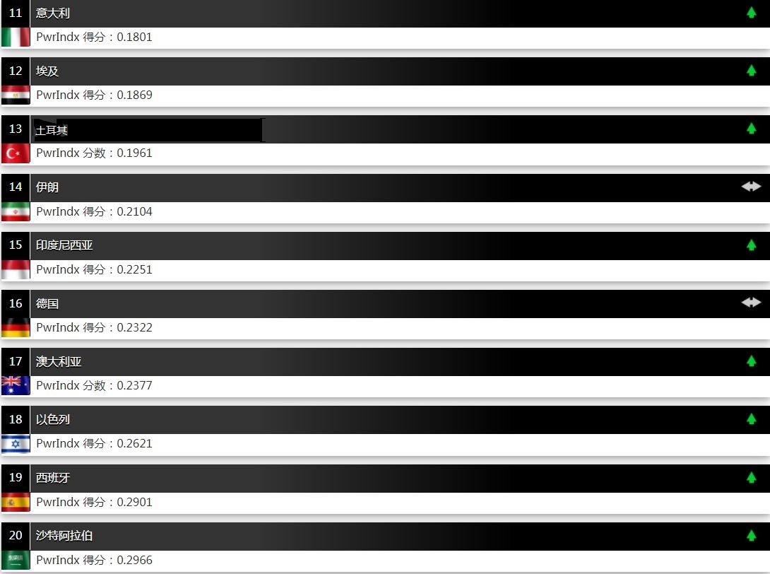 全球军力排名第11-20的国家和地区