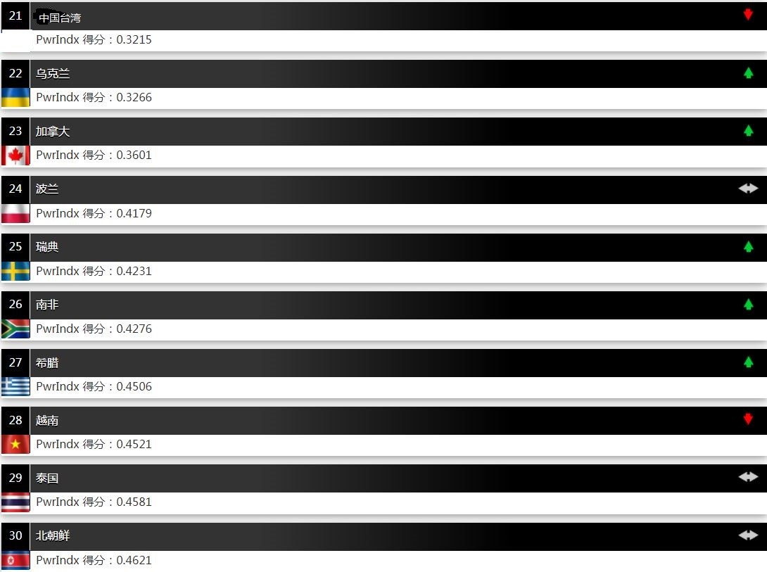 全球军力排名第21-30的国家和地区