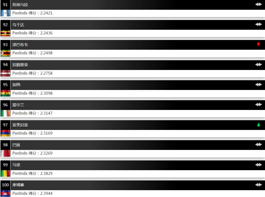 全球军力排名第91-100的国家和地区