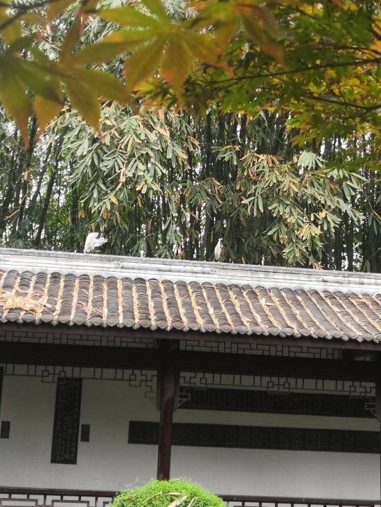 这个亭阁走廊屋顶上有很多白鹭,但是特别提示不要往竹林里走或者快速走过不要停留,因为竹林上有很多白鹭随地大小/便,我和我朋友走哪里过的时候,我朋友就不幸的被鸟选中了,总之那滋味就是一言难尽。