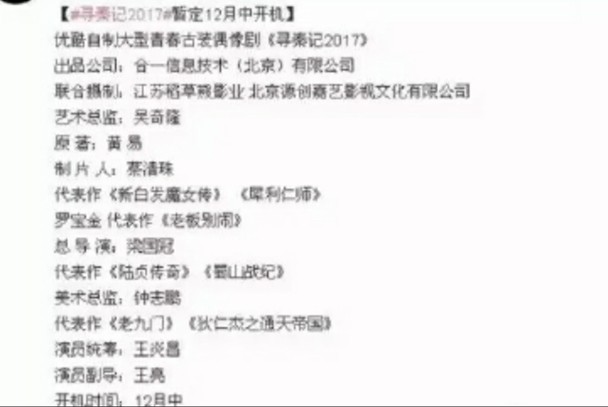 尽管大家翘首以待,电影版《寻秦记》除了传出2017年开拍外已没任何消息,反而又传出将重拍电视剧版《寻秦记》的消息。